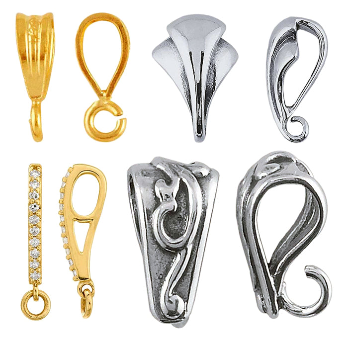 Enhance pendants and personalize completed designs with bails and enhancers in silver, gold, gold-filled, and base metals. Our extensive selection delivers the styles you want with the quality you trust.
