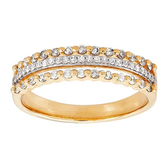 10K पीला सोना हीरे से सजा त्रि-पंक्ति शादी की अंगूठी