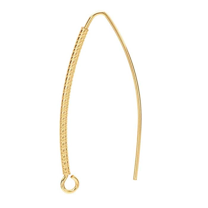 This 12/20 yellow gold-filled marquise-shaped ear wire features a long, textured tube bead accent. Use the attached ring to add your own drops or dangles. Gold-filled ear wires deliver karat gold at a more affordable cost than solid gold, allowing you to design with the touch of precious metal customers look for and to offer your designs at a price customers appreciate.