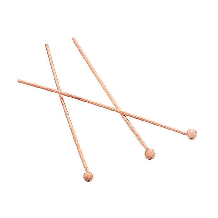 This 14/20 rose gold-filled ball head pin offers the attractive, high-end color of rose gold at an affordable price point and the fine-gauge wire makes it ideal for dangles and drops with small hole beads. This head pin is plated with 14-karat rose gold to ensure a uniform color.Ball head pins provide a decorative, bead-like end (or starting point) for the components you make with them. Simply choose a head size larger than the hole in your bead or other finding. The most popular choice for most applications, 1/2-hard pins stand up well in most jewelry styles and still allow the wire to be formed as needed—then hold their shape reasonably well. Choose an appropriate pin thickness based on your design and the hole size of your beads or findings so that they will be held securely in place without wobble or risk of loss.