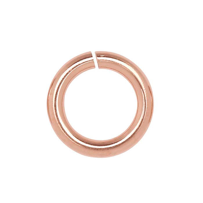 This 14/20 rose gold-filled round jump ring offers the attractive, high-end color of rose gold and is an ideal connector in your gold-filled designs; attach drops, dangles or charms or add it to a clasp. Jump rings are made from coiled wire and have an opening that allows you to insert it through a ring, loop or hole on another finding. A staple of the jewelry-making industry, these rings are ideal as attach rings for component designs, as strand or chain ends, and as links for creating chain. Solder rings closed to ensure that connections are permanently secure.