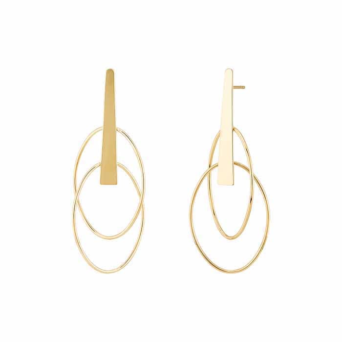 14K पीले सोने के डबल ओवल पोस्ट बालियाँ