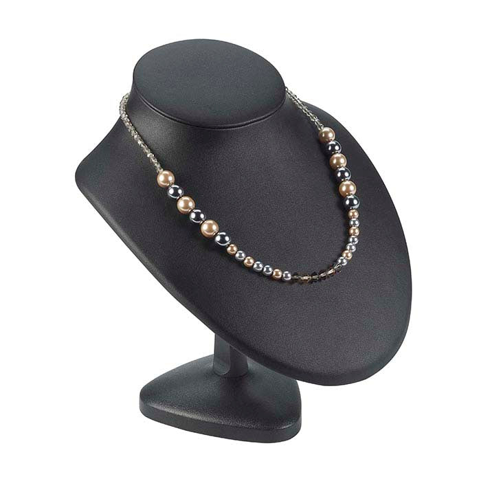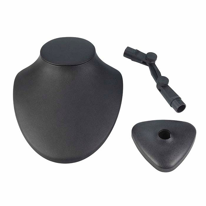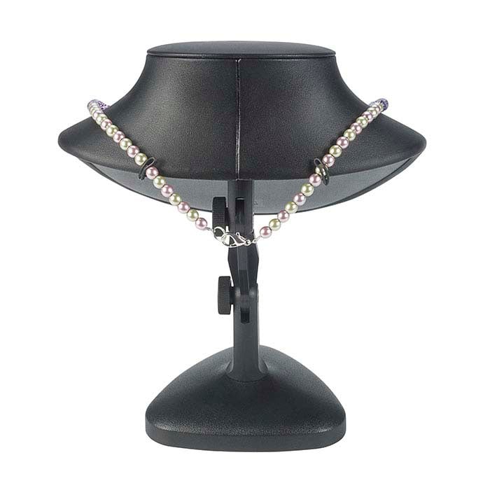 यह काला फॉक्स लेदर नेकलेस बस्ट विभिन्न प्रदर्शन और यात्रा के लिए आदर्श है; यह पूरी तरह से समायोज्य है, इसलिए आप अपने नेकलेस को लगभग किसी भी कोण पर प्रदर्शित कर सकते हैं। इस बस्ट की सरल आकृतियाँ नेकलेस और पेंडेंट्स को एक प्राकृतिक ड्रेप देती हैं ताकि ग्राहक देख सकें कि गहना पहनने पर कैसा दिखेगा। ऊंचाई और कोण सेट करने के लिए, पोस्ट पर प्रत्येक थम्बस्क्रू को ढीला करें और आवश्यकतानुसार समायोजित करें (ऊंचाई 5-1/4" से 8-7/8" तक समायोजित होती है)। यात्रा के लिए, डिस्प्ले तीन भागों में विभाजित हो जाता है, जिससे इसे पैक और ले जाना आसान हो जाता है। पीछे दो वायर टैब और एक इलास्टिक बैंड आपको बस्ट पर नेकलेस की लंबाई समायोजित करने और किसी भी अतिरिक्त चेन को साफ-सुथरे ढंग से छुपाने की अनुमति देते हैं। मुलायम काला फॉक्स लेदर ढाले हुए प्लास्टिक को कवर करता है।