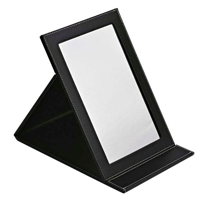 काले नकली चमड़े से ढका तहने वाला दर्पण