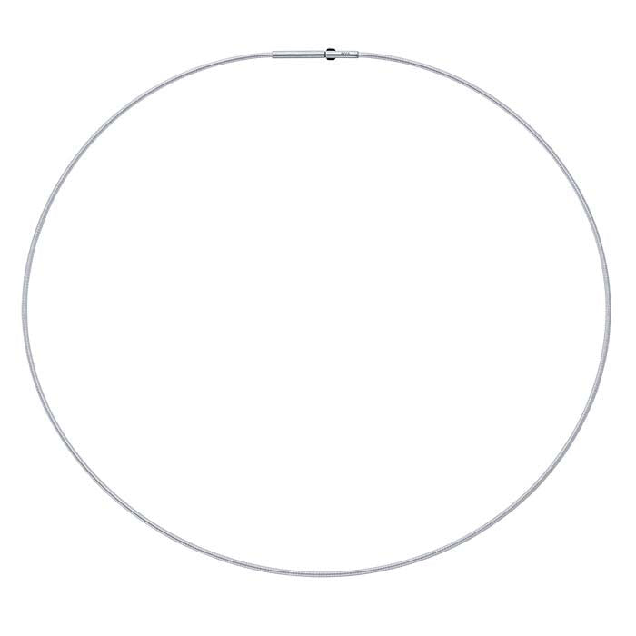 This cable neck wire is soft and flexible, offering a sleek appearance that can be worn as-is or dressed up with a pendant or other design components. A bright-finished push clasp completes the look and ensures a secure closure to help prevent loss or damage; to release, press the sides of the clasp, to close, simply fit the ends together and push until it locks. This neck wire is made of copper wire wrapped around a stainless steel core that has a fine silver plating and a final clear coating to ensure a bright-white color and to help protect against tarnish.