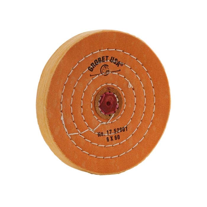 आक्रामक यौगिकों के साथ उपयोग के लिए आदर्श, यह 6" का 60-परत वाला बफिंग व्हील उपचारित मसलिन से बना है और उत्कृष्ट यौगिक धारण क्षमता प्रदान करता है। इस बफ में पांच सिलाई की पंक्तियाँ और एक चमड़े का केंद्र होता है।