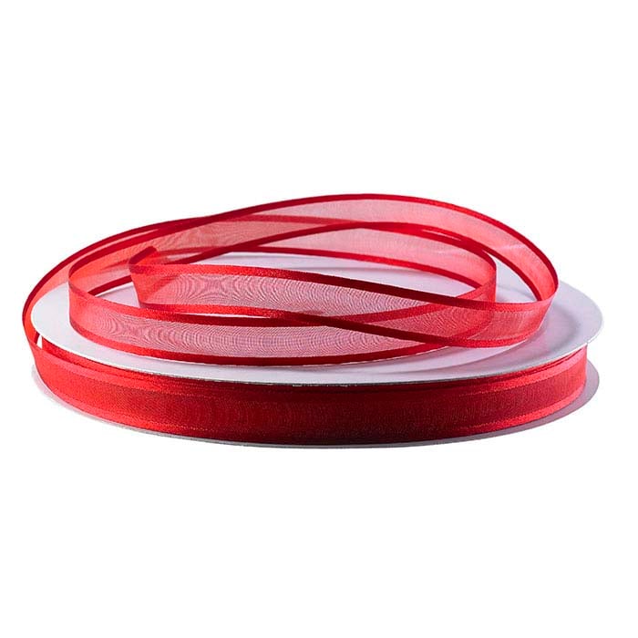 लाल ऑर्गेंजा रिबन ट्रिम के साथ, 100 गज।
