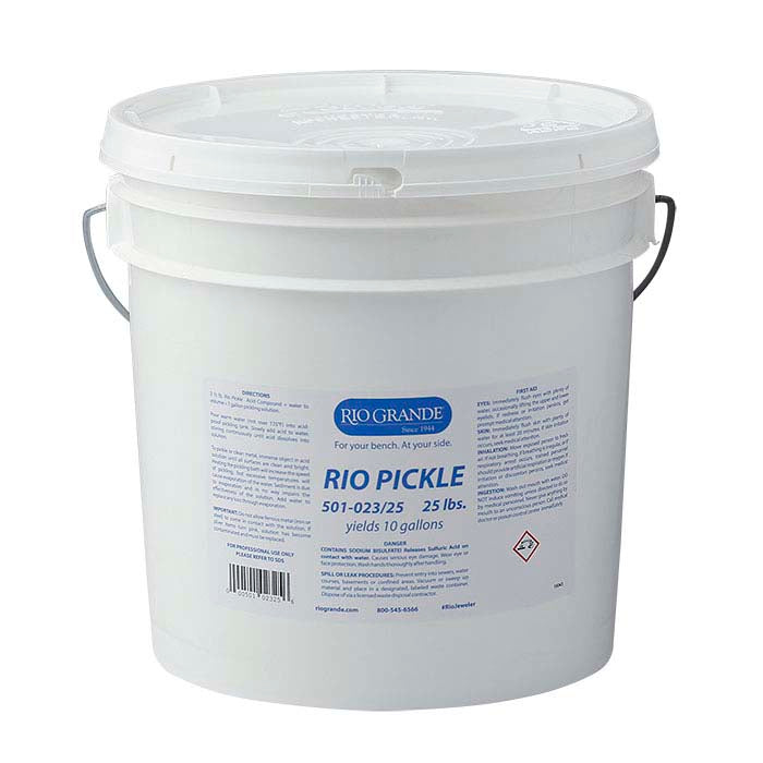 विशेष रूप से आभूषण उद्योग के लिए तैयार किया गया, किफायती Rio Pickle™ सोल्डरिंग या कास्टिंग के बाद चांदी, सोना, तांबा और अधिकांश अन्य गैर-लौह धातुओं से सतही ऑक्सीकरण और फ्लक्स को प्रभावी ढंग से हटाता है। नमी को बाहर रखने के लिए टिकाऊ कंटेनरों में पैक किया गया। गैर-दहनशील और सल्फ्यूरिक एसिड मिश्रणों की तुलना में सुरक्षित।