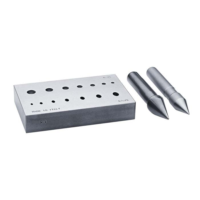 यह स्टील फॉर्मिंग ब्लॉक आपको आसानी से परफेक्ट बेज़ल और प्रोंग सेटिंग्स बनाने की अनुमति देता है। 14 छिद्रों में से प्रत्येक का 17° कोण होता है जिसे शामिल ओवल और राउंड पंच के अनुसार सटीक रूप से मशीन किया गया है। एक अच्छी तरह से पॉलिश सतह धातु की सतहों को खरोंचने से रोकने में मदद करती है। ब्लॉक और पंच 62 HRC तक हार्डन किए गए स्टील से बने हैं जो लंबी उम्र सुनिश्चित करता है।