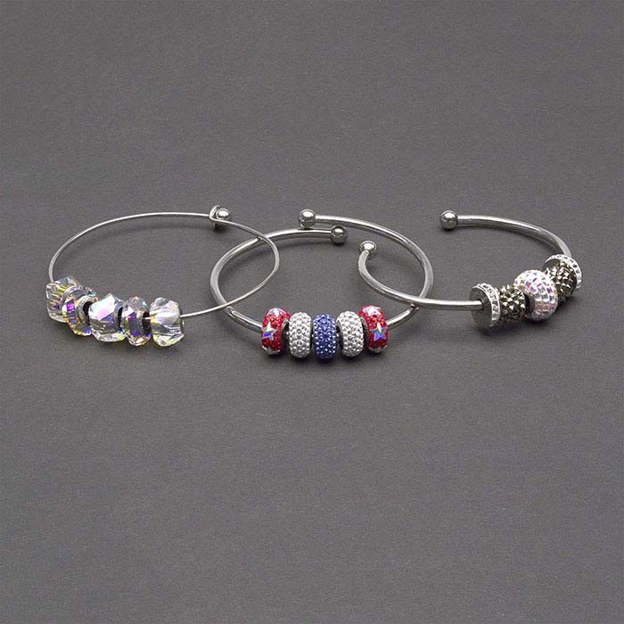 यह सरल स्टेनलेस स्टील कफ कंगन एक क्लासिक लुक प्रदान करता है और कस्टमाइज़ेशन के लिए आदर्श है। आसान लगने/उतारने वाले थ्रेडेड एंड कैप्स ग्राहकों को बड़े छेद वाले मोतियों और चार्म्स को जल्दी और आसानी से जोड़ने या हटाने के द्वारा डिज़ाइन को बार-बार बदलने की अनुमति देते हैं; 3 मिमी छेद वाले मोतियों के लिए उपयुक्त।
