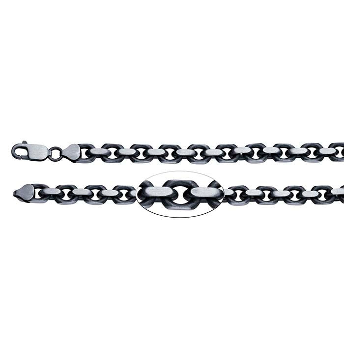 स्टर्लिंग सिल्वर गनमेटल-फिनिश 7.5mm डायमंड-कट ओवल केबल चेन