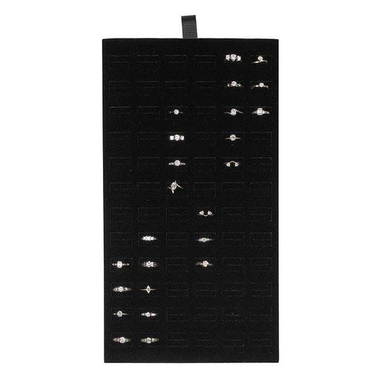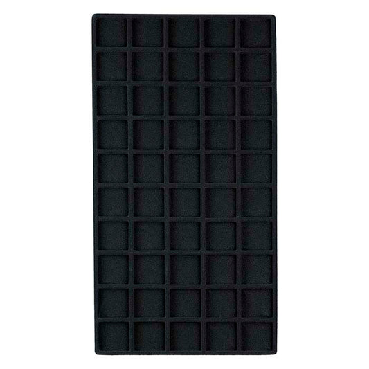 काला वेलोर-फ्लॉक्ड 72-रिंग चौड़ा-स्लॉट ट्रे इंसर्ट