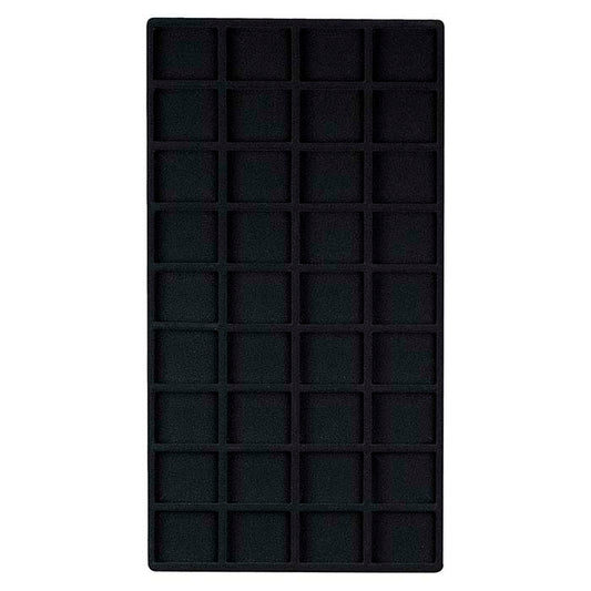 काला वेलोर-फ्लॉक्ड 36-रिंग आधा-साइज़ ट्रे इंसर्ट