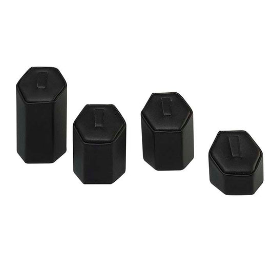 काला नकली चमड़े का षट्भुज स्तंभ अंगूठी प्रदर्शन सेट