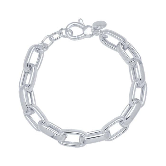 Sterling Silver 9.5mm Hollow Oval Link Chain Bracelet