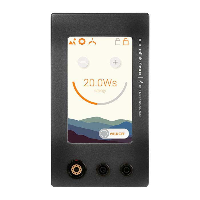 Built with leading-edge technology, the mPulse® PRO from Orion is a small powerhouse that delivers up to 60 joules of power and meets the rihorous demends of jewelers. It fires with enhanced precision using the included Tru-Fire Technology™, offering fewer misfires and improved welding consistency while the welder adjusts energy flow according to the strength of the ground at low energy levels. The mPulse® beautifully handles silver, gold and most other jewelry metals used in repair and creation. This system offers intuitive software that is easily updated over WiFi or through the USB port as needed. The mPulse Pro features: