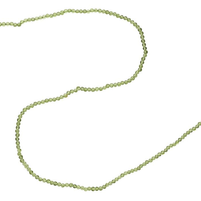 The round peridot beads on this strand feature light- to medium-green tones that are ideal for use in colorful necklace and bracelet designs. Use the beads to create a striking all-green necklace or combine the beads with a variety of complementary-color stones in a more complex pendant or bracelet—it looks great when paired with other bright gemstones, such as amethyst or citrine. Peridot is one of the birthstones for August.