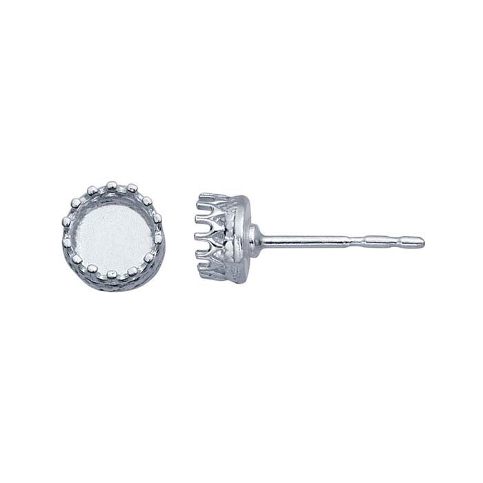 स्टर्लिंग सिल्वर 4mm राउंड गैलरी वायर कैबोशॉन पोस्ट इयररिंग माउंटिंग