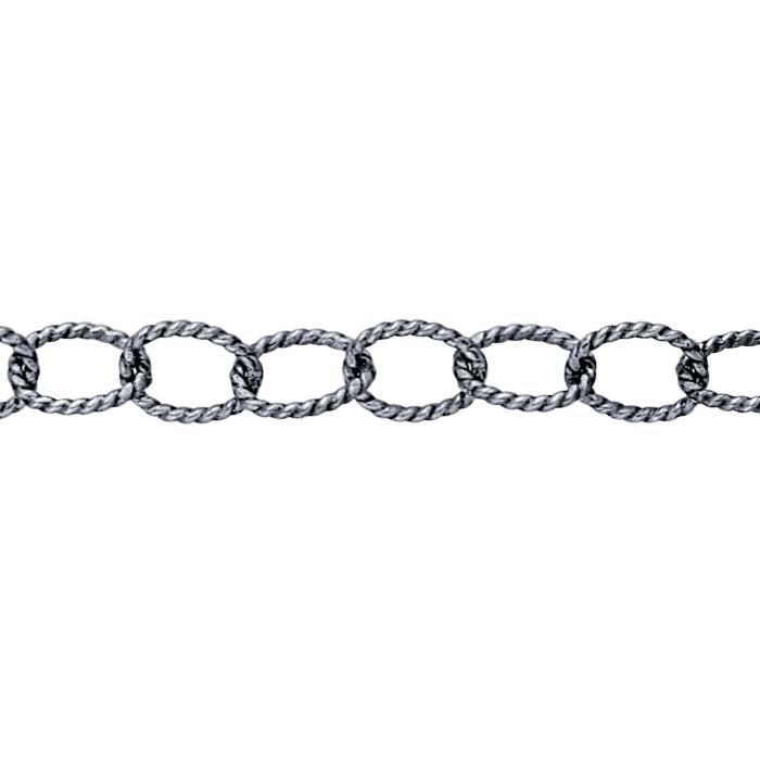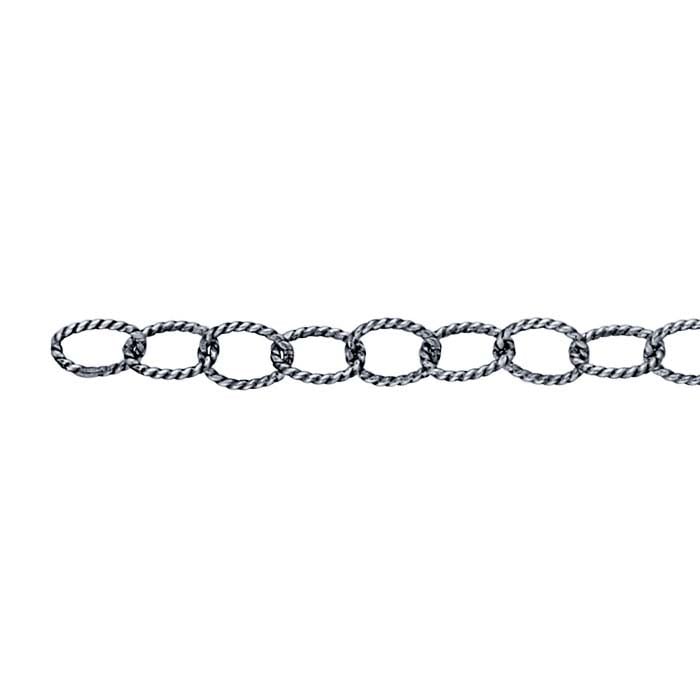 स्टर्लिंग सिल्वर ऑक्सिडाइज्ड 3.1mm पैटर्न ओवल केबल चेन, फुट के हिसाब से