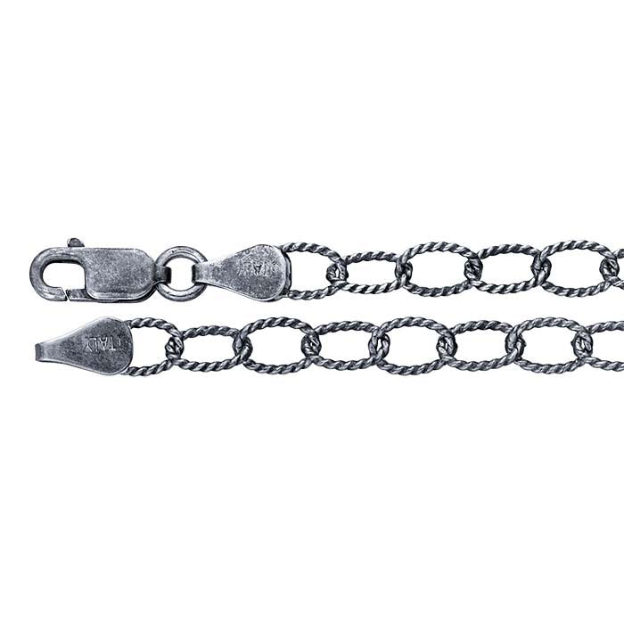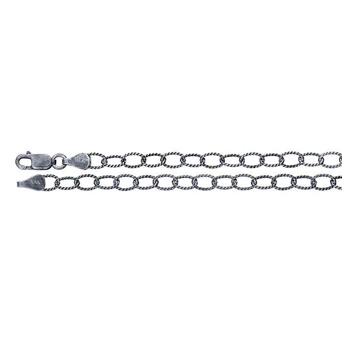 स्टर्लिंग सिल्वर ऑक्सिडाइज्ड 4.6mm पैटर्न ओवल केबल चेन