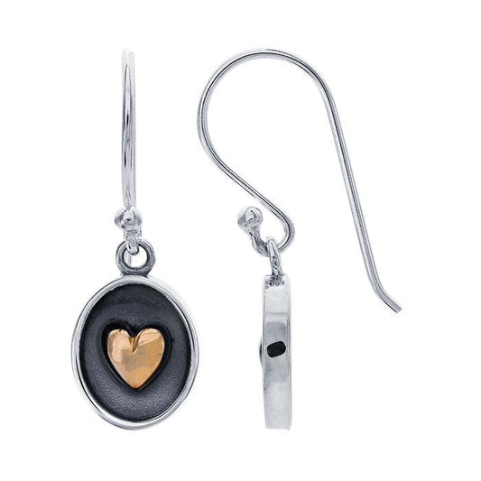 Sterling Silver Shadow Box Earrings with Bronze Heart