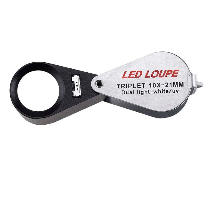 Lente d'ingrandimento 10X Triplet con doppia luce LED e luce UV