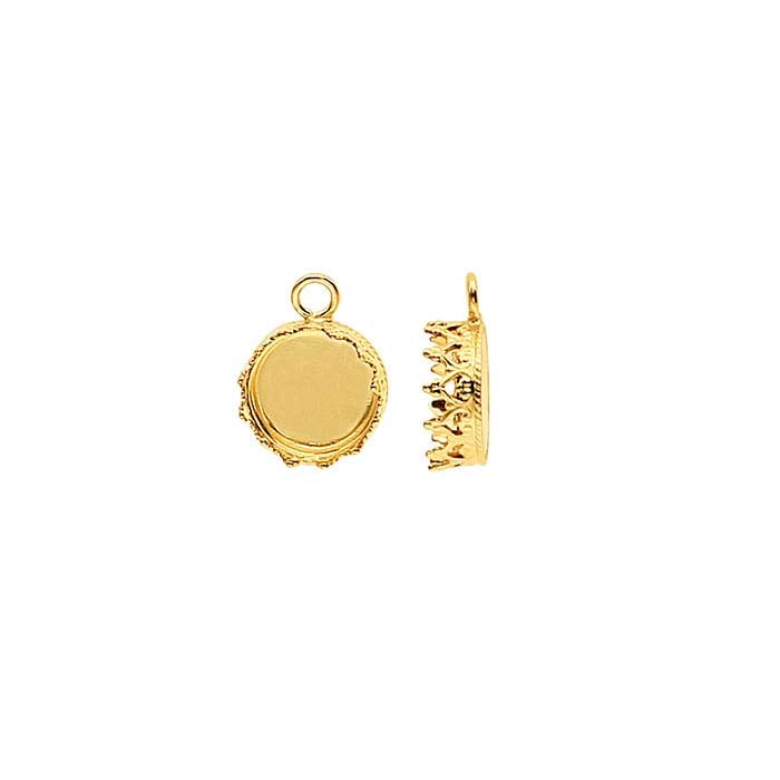 Questo componente montatura con castone in oro giallo 12/20 presenta pareti modellate da filo gallery e ospita un cabochon rotondo da 8 mm o altra pietra con base piatta. Usa il componente come pendente per orecchini, un delicato ciondolo o come elemento in design più complessi di collane e bracciali. Le coppe con castone offrono un modo semplice per incastonare le pietre e ottenere finiture con linee pulite e risultati professionali. Posiziona la pietra nel castone e spingi le pareti verso l'interno sopra la pietra, fissandola in posizione. Per maggiore sicurezza, se desiderato, metti una o due gocce di epossidica per gioiellieri nella coppa prima di posizionare la pietra. I componenti in oro filled offrono oro a carati a un costo più accessibile rispetto all'oro massiccio, permettendoti di progettare con il tocco del metallo prezioso che i clienti cercano e di offrire i tuoi design a un prezzo apprezzato dai clienti.
