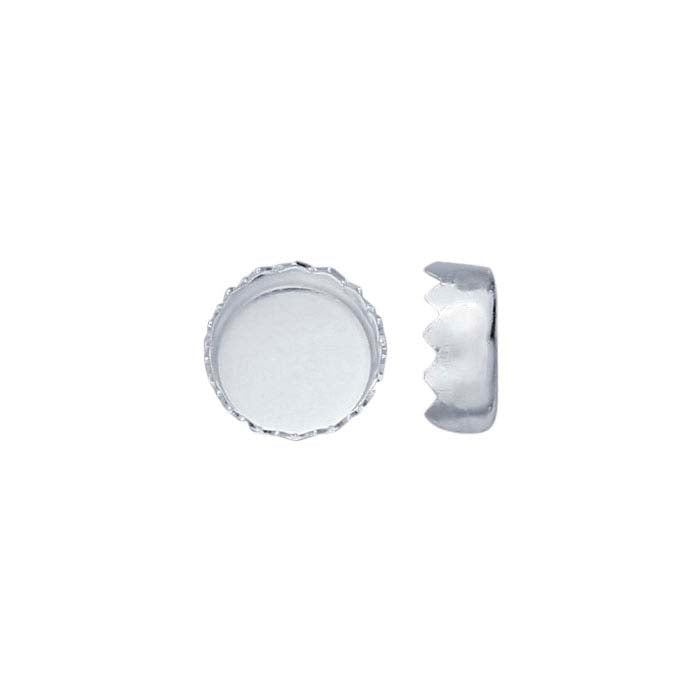 Questa bezel cup in fine silver presenta un bordo decorativo seghettato e contiene una pietra o cabochon di vetro rotondo da 5mm, pietra con base piatta o cristallo. Questa bezel cup facile da usare ti fa risparmiare tempo e offre linee pulite e una finitura dall'aspetto professionale. Usala per creare orecchini, gemelli o pendenti. Basta saldare la bezel cup a un componente o design e incastonare come desiderato.