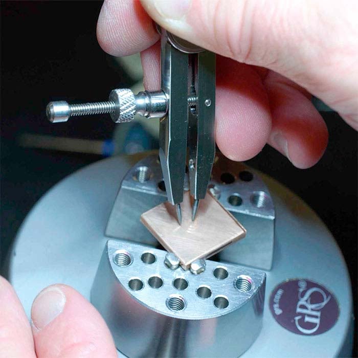 Progettato dal maestro incastonatore di livello mondiale Alexandre Sidorov, il divisore AlexTools® by GRS® è pensato per aiutarti a disporre con precisione le tue pietre preziose, bordi e altro. Una costruzione di alta qualità che rimane fissata alla tua misura rende questo strumento robusto, preciso e durevole. I punte in carburo di precisione possono essere personalizzate con ruote diamantate per i tuoi compiti e sono sostituibili (1160661, disponibili separatamente). Include una chiave a brugola e due dischi in acciaio inossidabile incise.