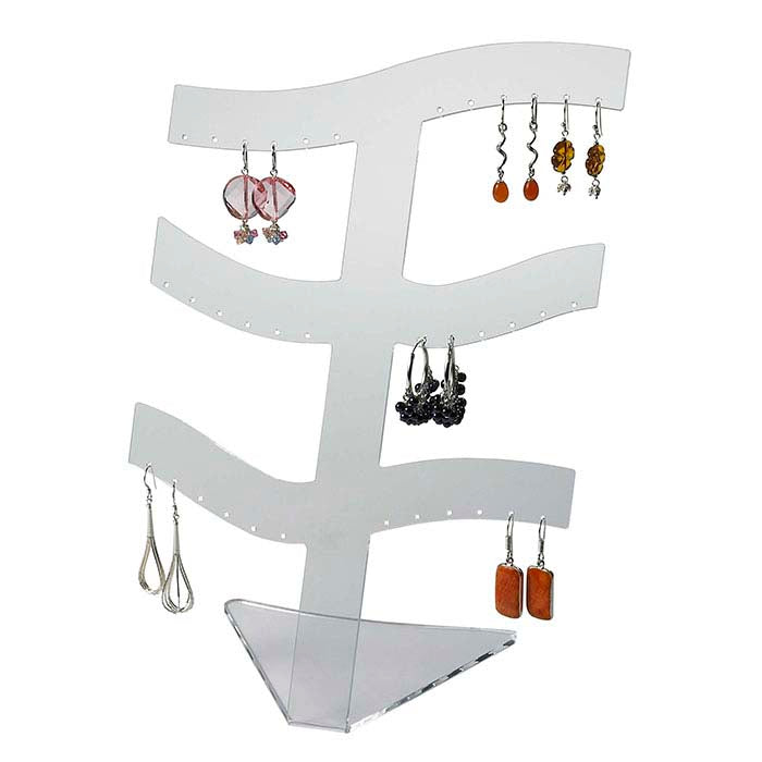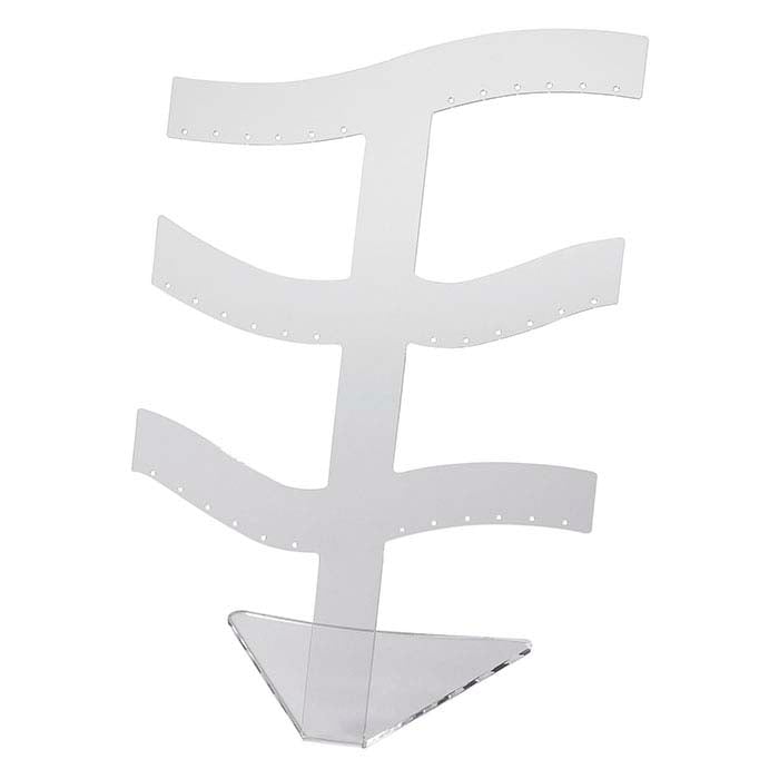Questo espositore ad albero per orecchini ospita una varietà di articoli di gioielleria e offre sei rami curvi, permettendoti di esporre fino a 18 paia di orecchini con perno o filo francese. Ogni ramo può contenere fino a tre paia di orecchini. L'espositore in acrilico trasparente è spesso 1/8" con bordi lucidati.