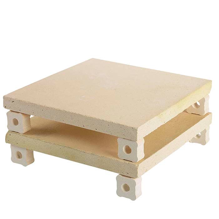 Rendi il tuo forno per argilla metallica efficiente quanto richiedono le tue esigenze di produzione con questo kit di scaffali impilabili, che include due scaffali in ceramica da 7" x 7" x 1/2" e otto piedini in ceramica. Aumenterai notevolmente la tua capacità di cottura. Impila gli scaffali, separati dai piedini, per creare strati di cottura all'interno dei tuoi forni.