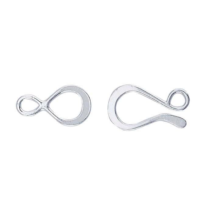 Questa chiusura a gancio e occhiello in argento sterling presenta una finitura liscia e brillante e un design a filo appiattito. La componente occhiello ha uno stile a forma di otto, che permette di fissare il filo usando un occhiello, lasciando l'altro libero per un facile aggancio alla parte a gancio. La sua forma versatile la rende una scelta eccellente per fissare bracciali e collane—è ideale per rifinire collane o bracciali con perline o realizzati con componenti in argento. Le chiusure a gancio e occhiello sono chiusure in due parti che si chiudono agganciando un lato (il gancio) a un anello chiuso grande (l'occhiello). Tendono a essere più grandi di altri tipi di chiusura e sono ideali per design più grandi, fili di perle o collane stile bavero. Il gancio aperto si affida al peso della collana per mantenere la chiusura sicura.