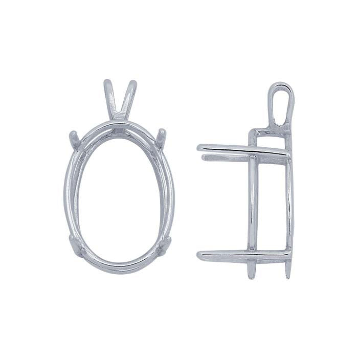 This sterling silver ReadySet™ pendant features a rabbit-ear bail and a 4-prong basket mounting that holds one 25 x 18mm oval faceted gemstone. The deeper basket accommodates higher stones than traditional basket mountings. Easy to set with professional-looking results, ReadySet™ settings have pre-notched prongs that help ensure beautiful, time-saving stone-setting. Basket settings feature open sides designed to allow more light to reach and move through the stone, enhancing its brightness and brilliance. A rabbit-ear bail is a tapered style that is split in half vertically, giving it the appearance of a pair of long, curving rabbit ears. Set your stone into the prongs to check the fit. If necessary, adjust the seat to best accommodate your stone. To secure the stone in place, burnish the prongs over the stone.
