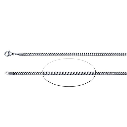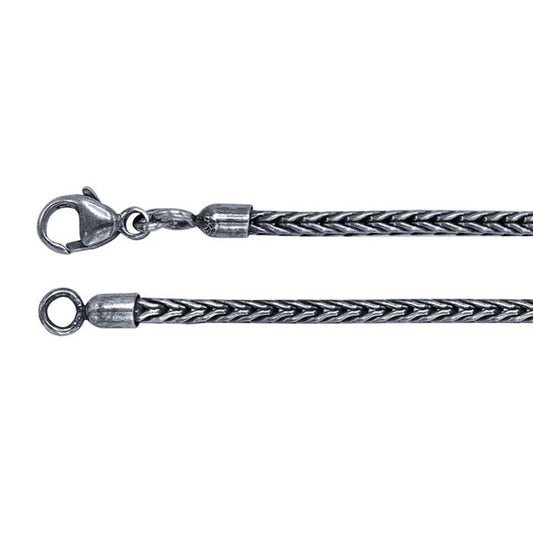 Sterling Silver Oxidized 2.5mm Round Foxtail Chain
