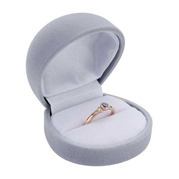 Scatola Regalo Rotonda per Anelli in Velluto Grigio Floccato