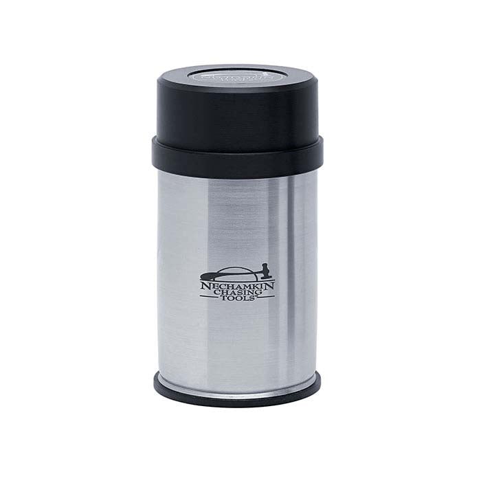 Realizzato in resistente acciaio inossidabile, questo contenitore per utensili da cesellatura ti aiuta a mantenere la tua postazione ordinata e gli strumenti a portata di mano. Contiene tutti i tuoi set di utensili da cesellatura Nechamkin. Il coperchio in Delrin® mantiene gli strumenti puliti e asciutti durante la conservazione; funge anche da supporto e inclina le facce degli utensili verso di te per una facile identificazione durante l'uso.