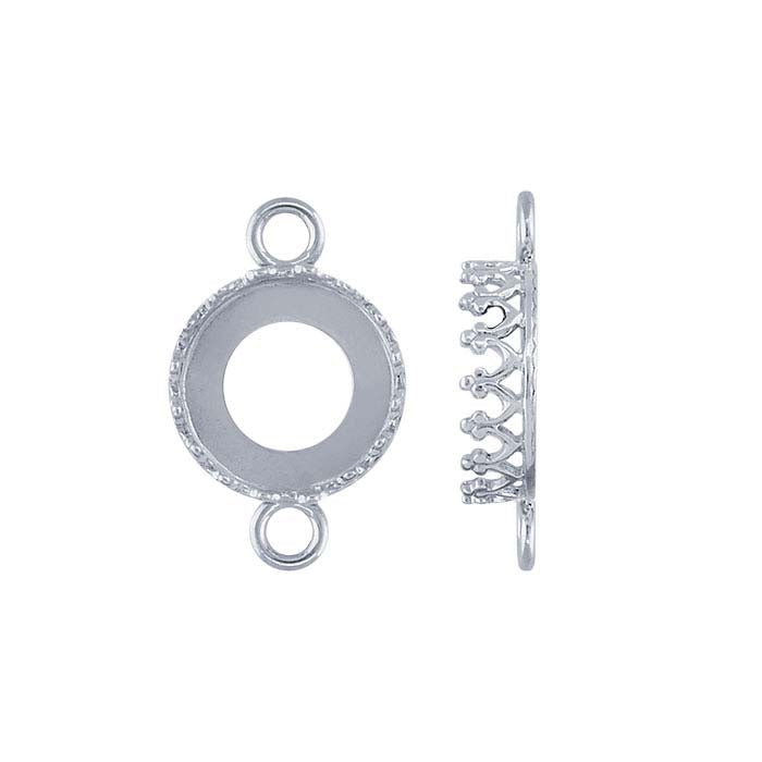 This sterling silver bezel link component mounting holds one 12mm round cabochon or other flat-back stone. A wide rim inside the walls supports the stone and reduces metal weight, making the mounting more affordable. Use jump rings to connect two or more links for an earring drop or dangle, or use it as a link in a variety of necklace and bracelet designs. Bezel cups provide an easy way to set your stones and finish with clean lines and professional-looking results. Place your stone in the bezel and push the walls inward over the stone, holding it in place. For added security, if desired, place a drop or two of jeweler's epoxy in the cup before placing the stone.