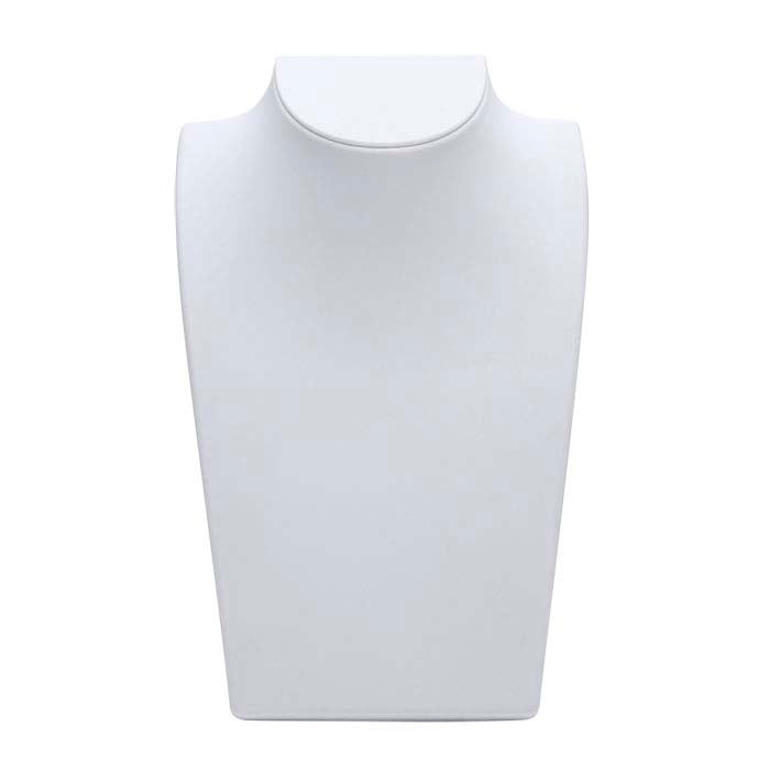 Designed for traveling, this plastic bust features a matte white finish that resists scratching and provides smooth surface that is ideal for displaying casual and contemporary styles. The display offers a built-in easel that folds into the back of the form for simple, trouble-free travel and storage. Lying flat, this display is under 3" high, saving space when packing for trade shows. The smooth contours of this bust give necklaces and pendants a natural drape that shows how they'll look when worn. A built-in cut-out retainer in the back allows you to adjust the necklace to the perfect length for display and secure any excess chain.