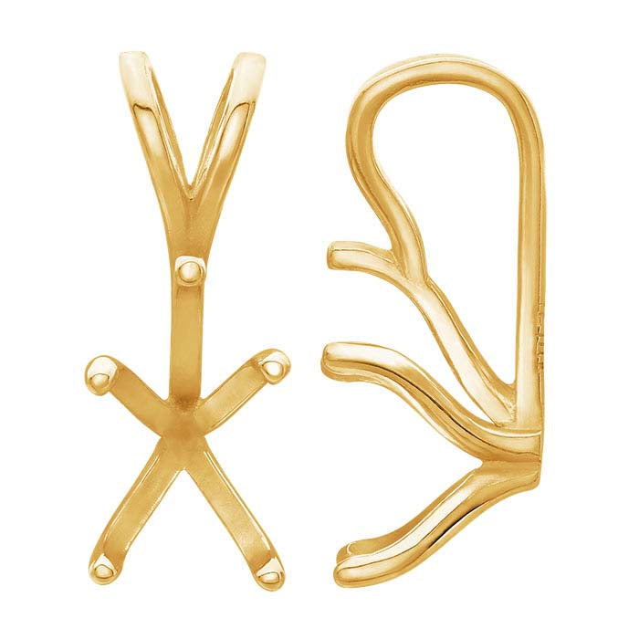 この14カラットイエローゴールドのペンダントマウントは、8 x 6mmのペアシェイプファセットカット宝石をシンプルな5本爪のセッティングで保持します。石に合わせて爪に座を切り、爪を石の上に押し当てて固定します。ペンダントにはマウントのデザインに調和したベイルが付いており、チェーンやコードに簡単に取り付けられます。このペンダントは、太陽光発電施設で厳格な品質基準に基づいて製造されています。