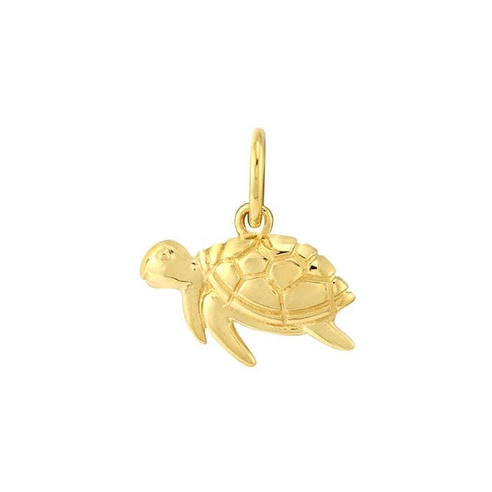 この14カラットイエローゴールドのチャームは、明るい仕上げの詳細なカメを特徴としています。イヤリングドロップを作成するか、他のチャームやコンポーネントと組み合わせて、より複雑なネックレス、ブレスレット、アンクレットのデザインにご利用いただけます。このチャームにはジャンプリングが含まれています。
