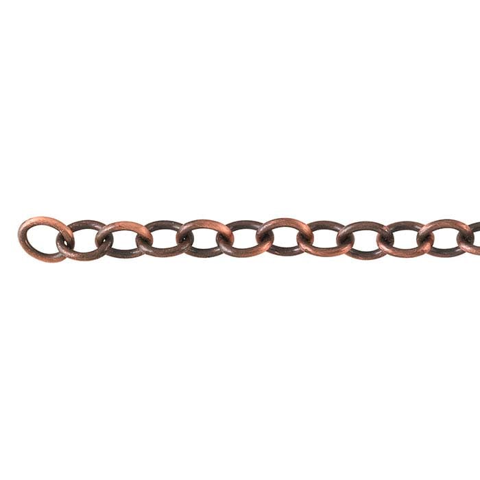 この経済的な銅製オーバルケーブルチェーンは、ヴィンテージスタイルのデザインに合う豊かで素朴な外観を出すために酸化処理されています。開いたリンクはダングル、チャーム、ドロップを取り付けるのに最適で、チェーンのセグメントはより大きな作品の要素としても使用できます。最も一般的なチェーンスタイルであるケーブルチェーンは、単一のリンクを直角に端から端へ単純に接続して形成されます。リンクは丸型、楕円形、またはその他の形状があり、このチェーンのリンクは楕円形です。