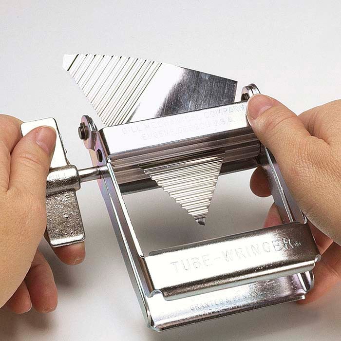 このオールメタル製チューブリングは、プラスチック製チューブリングや紙製クリンパーでは得られない均一な圧力を金属に加えます。波形ローラーが金属板に一貫したパターンを適用します。Tube-Wringer®は効率的に金属をクリンプ(波形加工)し、折り目を確実にし、折り目のテクスチャーさえ作り出しますが、プリーツは作りません。3インチのローラーは幅2-1/2インチ、最大24ゲージの厚さの金属板に対応します。オールスチールフレームとアルミニウムローラーを備えたこのコンパクトなツールは、軽量金属の小規模作業向けに設計されています。