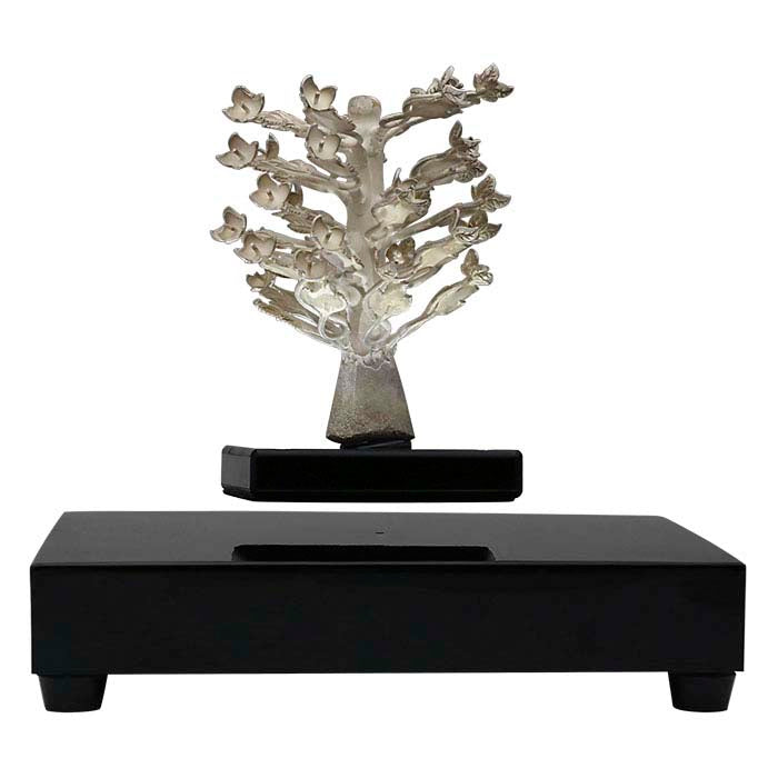 ジュエリーアイテムの重量が磁石の中央に均等にかかるように調整してください。そうしないとプラットフォームは回転しません。まずプラットフォームを浮上させ、その後慎重にジュエリーをプラットフォームの中央に置いてください。プラットフォームは最大200グラム(約7オンス)まで保持できます。充電器ベースの正確な中央には小さなくぼみがあり、磁気四角ディスクプラットフォームの底には小さな突起があります。突起をくぼみに合わせ、そっとプラットフォームを離して浮上プロセスを開始してください。このディスプレイには浮上補助キットとACアダプターが付属しています。ベースの底部にあるゴム足がカウンターを保護します。