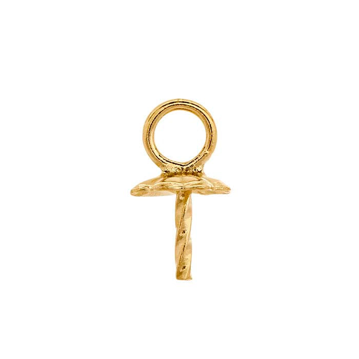 この14/20イエローゴールドフィルドの花柄コンポーネントマウント(スクリューアイとも呼ばれます)は、半穴あきのパールまたは宝石球を1つ保持します。パールをペグに固定するには宝飾用エポキシを使用してください。ツイストのテクスチャーがエポキシの保持力を高めます。このコンポーネントは均一な色合いを保つために14金イエローゴールドでメッキされています。