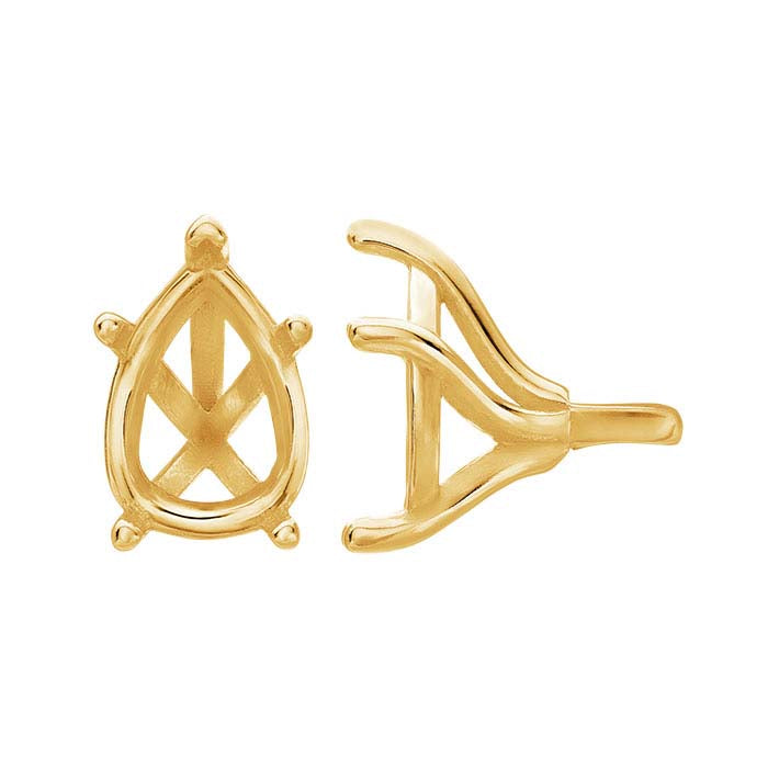 この14カラットイエローゴールドのセッティングは、6 x 4mmのペアカットファセット宝石を1石保持します。5本爪のセッティングは、大きなまたは高価な宝石に対して追加の安全性を提供します。