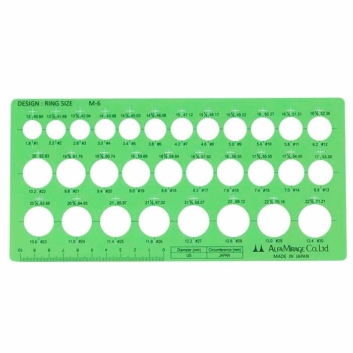 貴重なデザイン時間を最大限に活用し、紙の上でジュエリーデザインをレイアウトしましょう!このテンプレートには、リングサイズ#1~#30があり、それぞれのサイズについて直径と円周(mm単位)が表示されています。