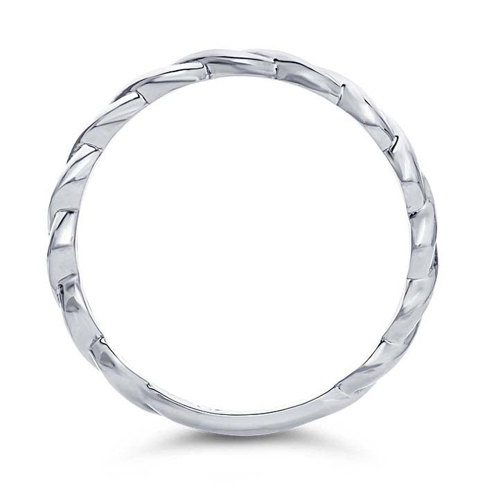 이 14캐럿 화이트 골드 반지는 역동적인 꼬인 밧줄 모양을 특징으로 하며, 반지 크기를 쉽게 조절할 수 있는 사이징 바가 있습니다. 이 반지는 여러 개를 겹쳐 착용하는 디자인에 이상적입니다. 고객에게 다양한 스택 가능한 반지 스타일을 제공하여 자유롭게 조합할 수 있도록 하고, 자신만의 변형 가능한 디자인을 만들도록 권장하세요.