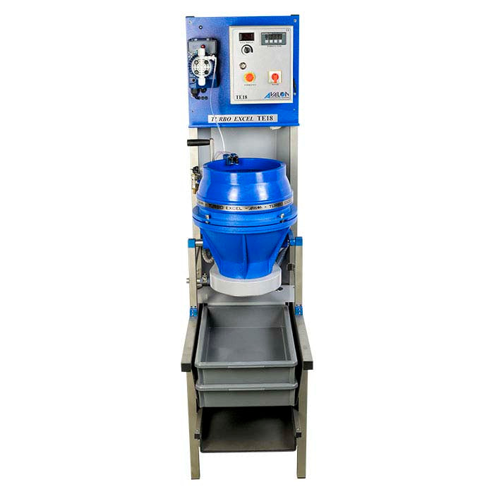 이 혁신적인 습식 텀블러는 Avalon 볼 디자인과 18리터 용량을 결합하여 대형 스튜디오에 적합합니다. 텀블러는 경쟁 모델보다 상단이 더 가늘어져 더 효율적인 텀블링 패턴과 빠른 마감을 제공합니다. 회전하는 볼 덕분에 사이클을 쏟아내는 것이 빠르고 쉽습니다. 단지 기울여서 내용물을 두 개의 내장 분리 망 위로 쏟아내면 완성된 제품을 확인할 수 있습니다. 이 기계는 최대 10개의 프로그래밍 가능한 텀블링 사이클을 저장할 수 있어 자주 사용하는 시퀀스를 설정하고 저장할 수 있습니다. 습식 장치는 디버링 컴파운드 분배를 조절하는 도징 펌프를 포함합니다. 사용된 액체는 배수관을 통해 회수 버킷으로 배출됩니다. 이 제품은 외부 110볼트 변압기가 포함된 220볼트 유닛입니다.
