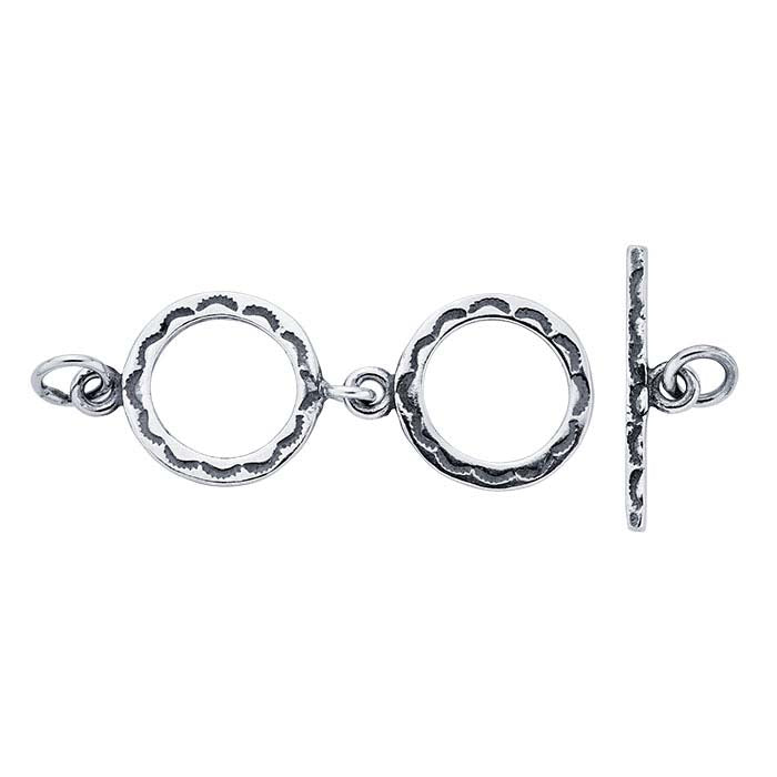 이 스털링 실버 토글 클라스프에는 최적의 착용감을 위해 조절할 수 있는 두 개의 링이 포함되어 있습니다. 클라스프는 링과 바에 스탬프 패턴이 있으며, 단일 가닥 사용을 위해 설계되어 코드, 비즈 또는 체인으로 만든 목걸이와 팔찌에 적합한 선택입니다.