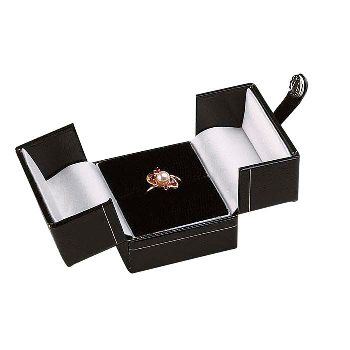 블랙 인조 가죽 스냅 탭 반지 선물 상자